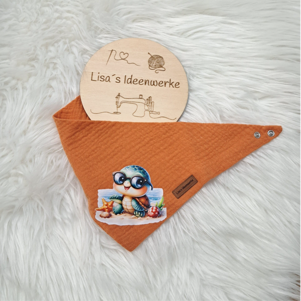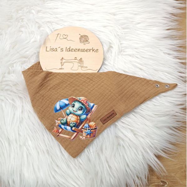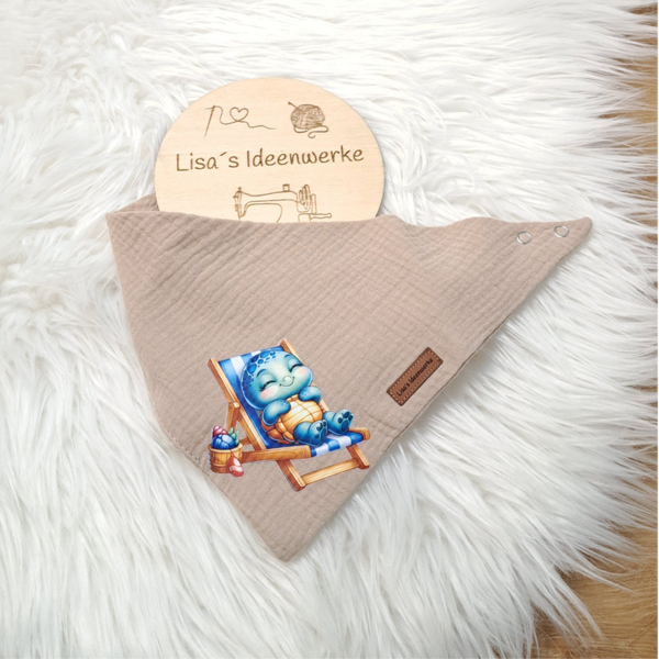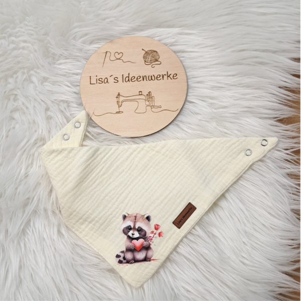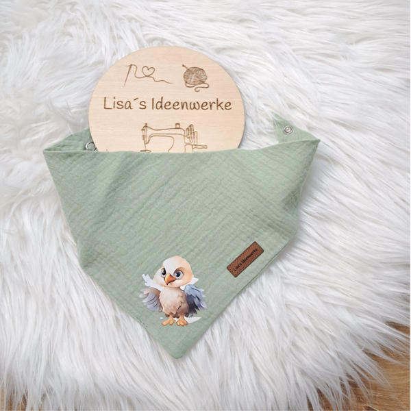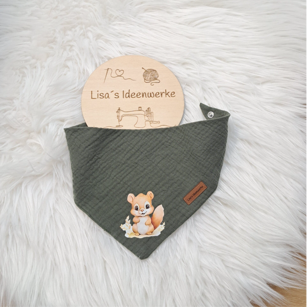 Dreieckstücher beidseitig aus Musselin mit Bügelbild.